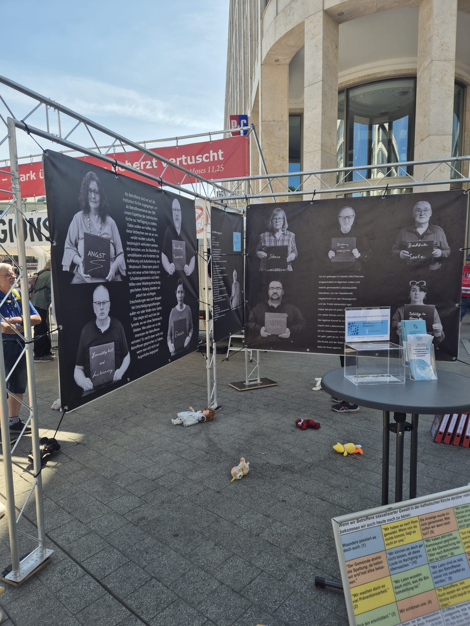 Auf dem ökumenischen Kirchentag in Hannover war auch die Betroffeneninitiative-Hildesheim mit einem Infostand vertreten. Ziel der Aktion war es unter anderem, auf den Missbrauch in beiden Kirchen hinzuweisen. Zwischen penetranten versuchen von Missionarisierungen und Beschimpfungen, kam es auch zu Diebstählen und Sachbeschädigung. Ein Zeichen von klarer Verdrängung des Themas sexueller Gewalt.